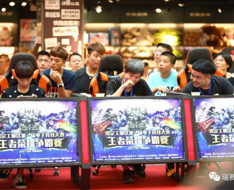 除足球等传统体育赛事等,瑞赛体育同时也注重电子竞技这一新兴体育赛事的发展。2017年8月,瑞赛体育承办了嘉定工业区第一届电子竞技大赛-王者荣耀争霸赛,吸引着众多观众前来观看比赛,现场超大巨幕直播精彩赛事,更是邀请了KPL职业解说英凯与他的搭档尤樱来控制画面的播放视角给呈现最清晰详细的激烈场面,全方位呈现精彩赛事,也给参赛者带来了超棒参赛体验。